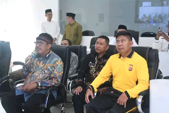 Bupati Sukabumi H Asep Japar bersama Wakil Bupati H Andreas, Sekretaris Daerah H Ade Suryaman, serta Forkopimda melakukan pemantauan jalannya kegiatan secara virtual di Command Center Setda Kabupaten Sukabumi.