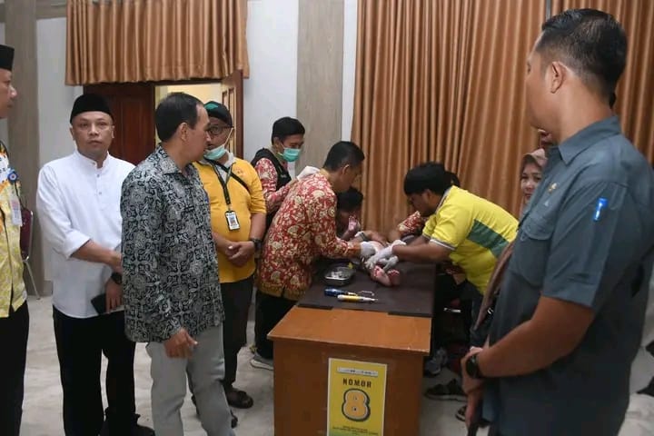 Usai melakukan pemantauan secara virtual, Bupati bersama jajaran meninjau langsung pelaksanaan sunatan massal di Aula Sekretariat Daerah Kabupaten Sukabumi.