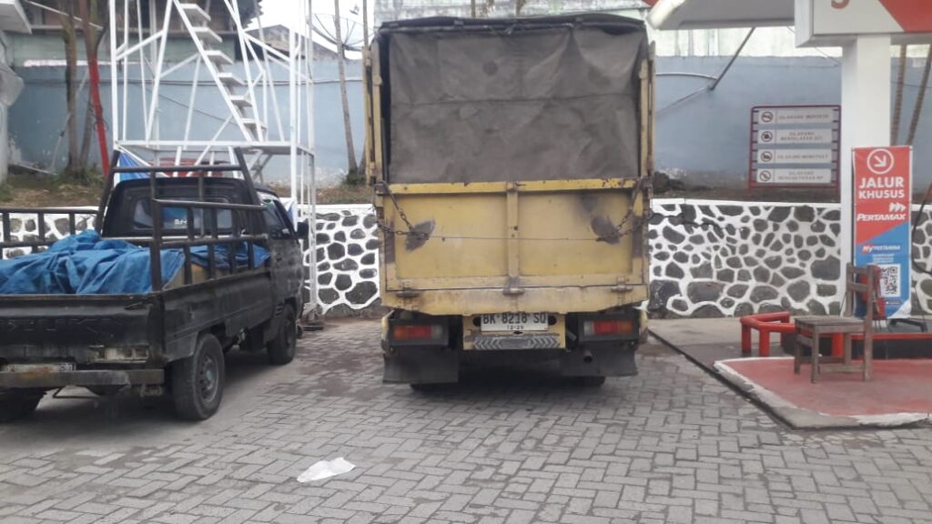 Terlihat, mobil colt diesel yang telah berisi 40 jerigen ukuran 35 liter per jerigen masi menunggu jerigen nya yang sedang di isi oleh oprator. dan dalam hal ini, diminta kepada polres tanah karo menangkap semua yang terlibat dalam penyelewengan minya bersubsidi tersebut.baik penyalur atau pun penampung bbm bersubsidi tersebut. apa bila tidak dilakukan penegakan hukum tentang penyelewengan tersebut, jelas jelas hal tersebut dapat membuat asumsi asumsi liar di tengah tengah masyarakat luas.lolasi penyelewengan tersebut berada 1 km dari mapolres tanah karo.jadi cukup dekat lokasi nya. ( master purba )bersambung.