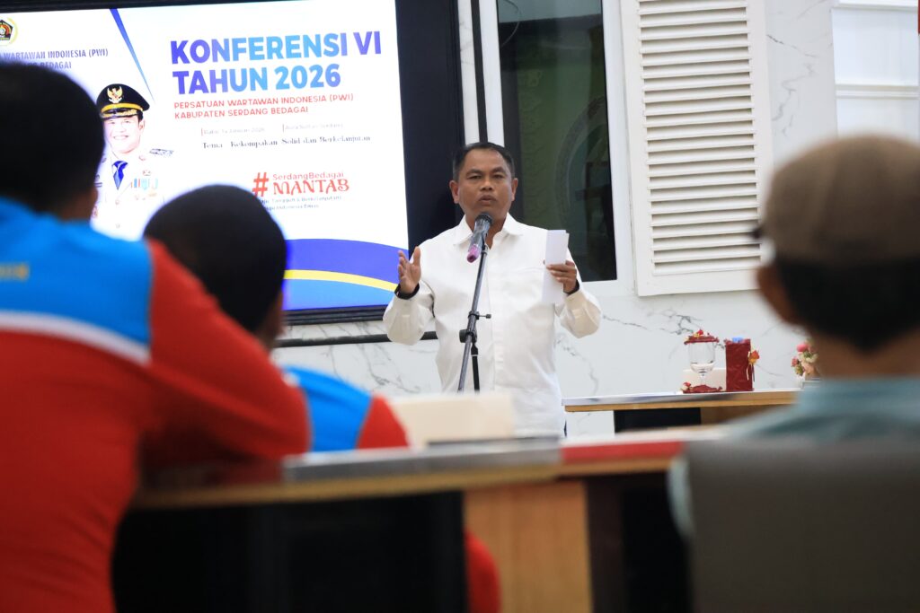 Bupati Serdang Bedagai (Sergai) H. Darma Wijaya didampingi Wakil Bupati Sergai H. Adlin Tambunan menegaskan pentingnya kekompakan dan profesionalisme Persatuan Wartawan Indonesia (PWI) sebagai pilar demokrasi di tengah derasnya arus informasi digital. Hal itu disampaikannya saat membuka Konferensi VI PWI Kabupaten Sergai di Aula Sultan Serdang, Kompleks Kantor Bupati Sergai, Sei Rampah, Rabu (14/1/2026).