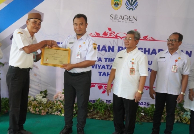 Penyerahan penghargaan dilakukan langsung oleh Bupati Sragen, Sigit Pamungkas, kepada para kepala sekolah penerima dalam acara yang digelar di Halaman SD Negeri Saradan 1, Rabu (15/10/2025).