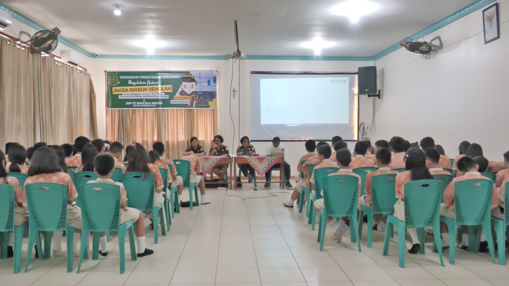 Sebagai salah satu program prioritas untuk mendukung terwujudnya generasi muda yang smart dan berkwalitas, kegiatan penyuluhan hukum perdana di tahun 2026 ini digelar di Aula SMP ST.Ignasius Medan berlangsung sejak pukul 09.30 hingga selesai dengan menghadirkan Jaksa Fungsional Bidang Intelijen sebagai narasumber.