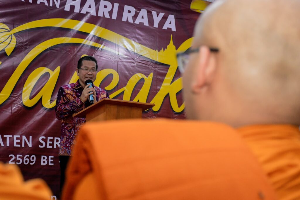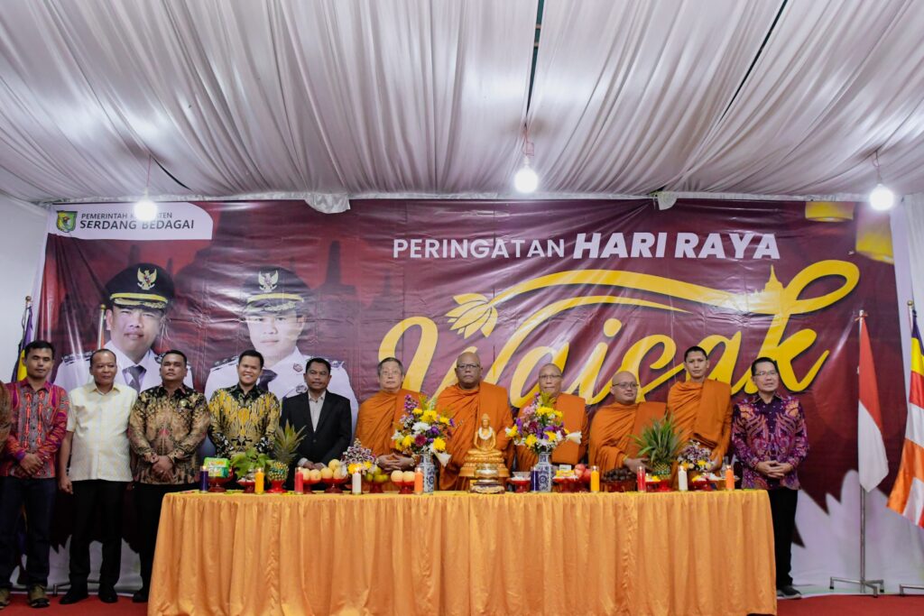 Pemerintah Kabupaten Serdang Bedagai (Pemkab Sergai) kembali menegaskan komitmennya dalam merawat kerukunan umat beragama. Hal ini disampaikan langsung oleh Bupati Sergai Darma Wijaya didampingi Wakil Bupati (Wabup) Adlin Tambunan saat menghadiri perayaan Hari Raya Waisak 2569 BE/2025 M di Vihara Lokesvhara, Desa Pon, Kecamatan Sei Bamban, Minggu (8/6/2025) malam.