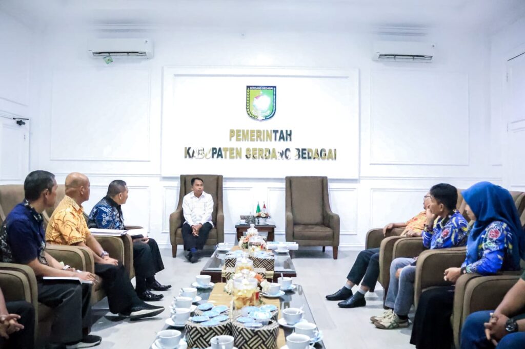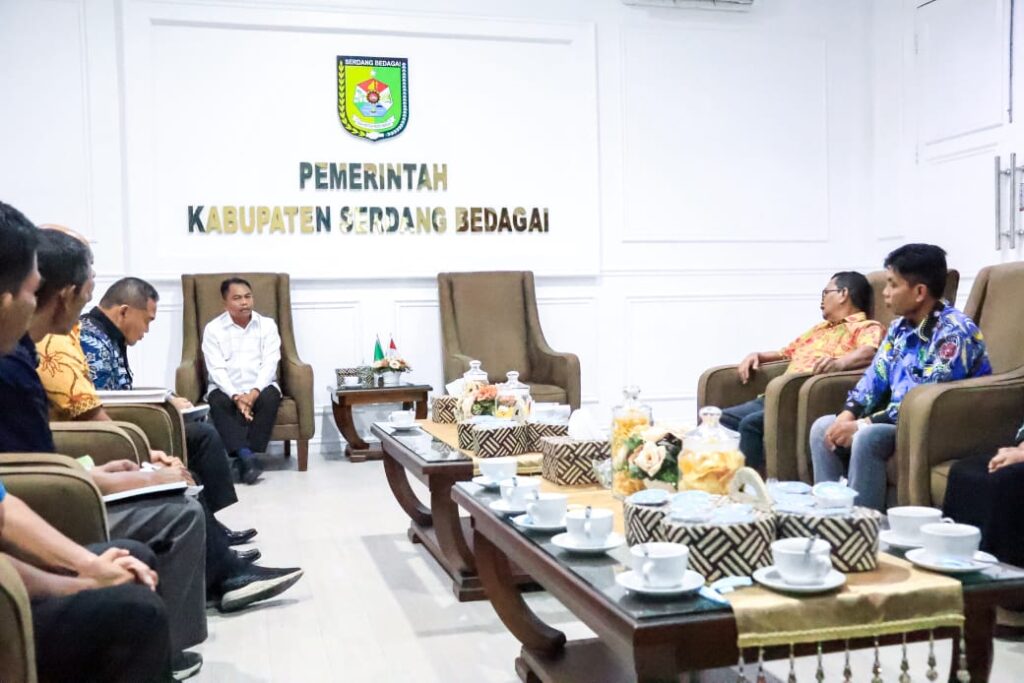 Bupati Serdang Bedagai (Sergai) H. Darma Wijaya menerima kunjungan silaturahmi jajaran Kontak Tani Nelayan Andalan (KTNA) Kabupaten Sergai di ruang kerjanya, Komplek Kantor Bupati Sergai, Sei Rampah, Kamis (23/4/2026).