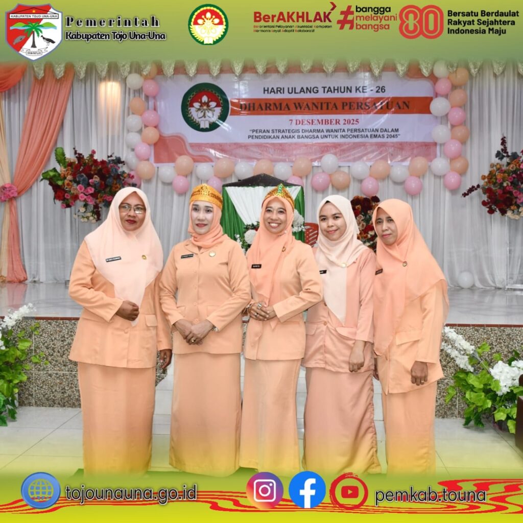 Perwakilan Dharma Wanita Persatuan (DWP) Dinas Komunikasi dan Informatika (Diskominfo) Kabupaten Tojo Una-Una menghadiri puncak peringatan Hari Ulang Tahun (HUT) ke-26 Dharma Wanita Persatuan yang berlangsung di Aula Hotel Ananda, Senin (08/12/2025). Kehadiran DWP Diskominfo menjadi wujud dukungan penuh terhadap rangkaian agenda tahunan yang memiliki makna strategis bagi perjalanan organisasi para istri aparatur sipil negara tersebut.