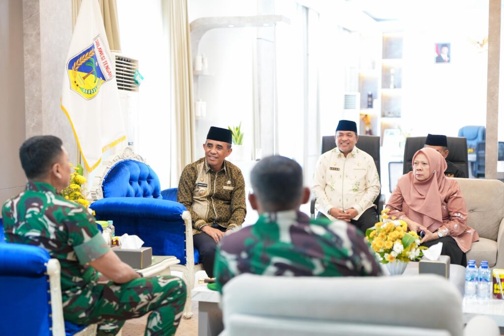 PALU indoglobenews.com – Gubernur Sulawesi Tengah, Anwar Hafid, didampingi Wakil Gubernur Sulteng, dr. Reny Lamadjido dan Sekretaris Daerah Sulteng, Novalina menerima silaturahmi Pangdam XXIII/Palaka Wira, Mayjen TNI Jonathan Binsar Parluhutan Sianipar, bersama jajaran di ruang kerjanya, Kamis (4/9/2025). Pertemuan berlangsung hangat dalam membangun sinergi antara pemerintah daerah dan TNI untuk kemajuan Sulawesi Tengah.
