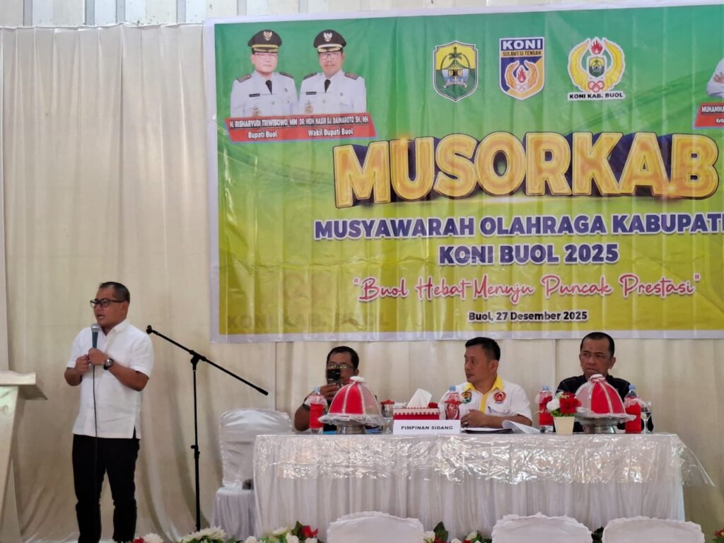 Buol indoglobenews.com H.Risharyudi Triwibowo M.M ,resmi terpilih sebagai Ketua Komite Olahraga Nasional Indonesia (KONI) Kabupaten Buol periode 2026–2030. Bowo sapaan akrab Bupati Buol ini ditetapkan secara aklamasi yang mendapat dukungan dari Cabang Olahraga )Cabor) peserta dalam Musyawarah Olahraga Kabupaten (Musorkab) II KONI Buol yang digelar Sabtu (27/12/2025) di Aula Srikandi Kulango.