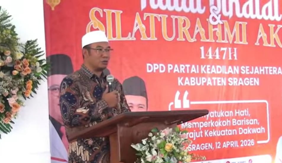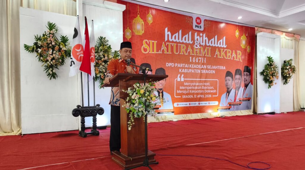 Poto Dihadapan ribuan kader simpatisan PKS dalam acara halal bihalal di gedung Kartini, Bupati Sragen Sigit Pamungkas sampaikan apresiasi kepada jajaran pengurus dan fraksi PKS yang telah mendukung Pemerintah Daerah Kabupaten Sragen Minggu 12/4/2026 poto wahono.———————————————-