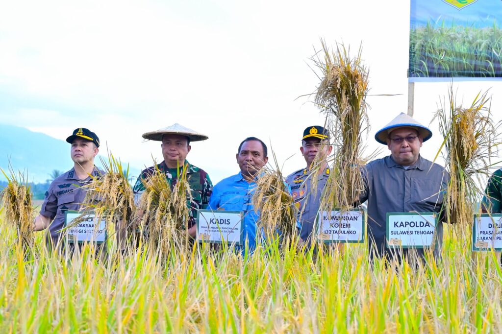 Sigi indoglobenews.com – Gubernur Sulawesi Tengah Dr. H. Anwar Hafid,M.Si didampingi Ketua TP PKK Sulteng Ny. Ir. Sri Nurwanti Bahasoan serta Pangdam XXIII/Palaka Wira Mayjen TNI Jonathan Binsar Parluhutan Sianipar bersama Ketua Persit Kartika Chandra Kirana Daerah XXIII/Palaka Wira, Ny. Dewi Binsar Sianipar menghadiri panen raya padi perdana yang berlangsung di Desa Sibalaya Utara, Kecamatan Tanambulava, Kabupaten Sigi, Kamis (4/9/2025).
