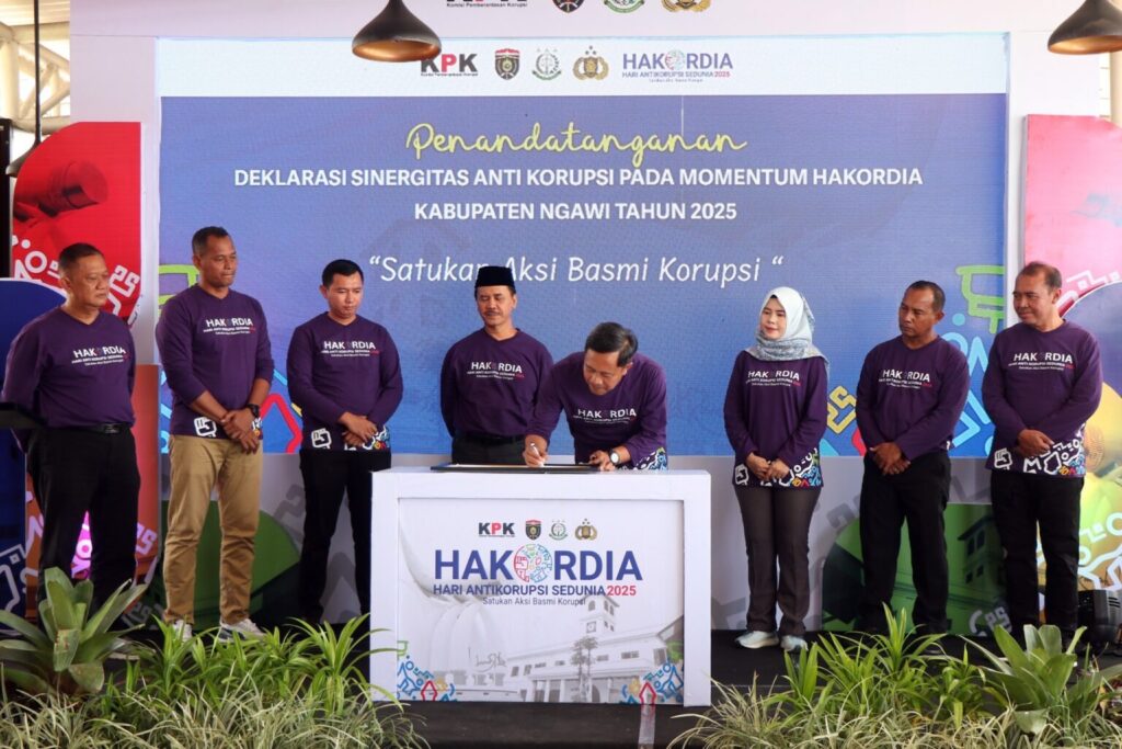 NGAWI INDOGLOBENEWS.COM – Pemerintah Kabupaten Ngawi memperingati Hari Anti Korupsi Sedunia (Hakordia) 2025 di Mal Pelayanan Publik (MPP) Ngawi sebagai momentum memperkuat pengawasan layanan publik dan menanamkan nilai integritas kepada generasi muda. Kegiatan ini menjadi ruang menegaskan arah pembenahan tata kelola daerah ditengah meningkatnya tuntutan masyarakat akan pemerintahan yang bersih dan transparan, yang berlangsung pada Jumat dikutip dari suara.ngawikab.go.id/ (12/12/25) dan dihadiri Forkopimda, perangkat daerah, instansi vertikal, serta BUMD.