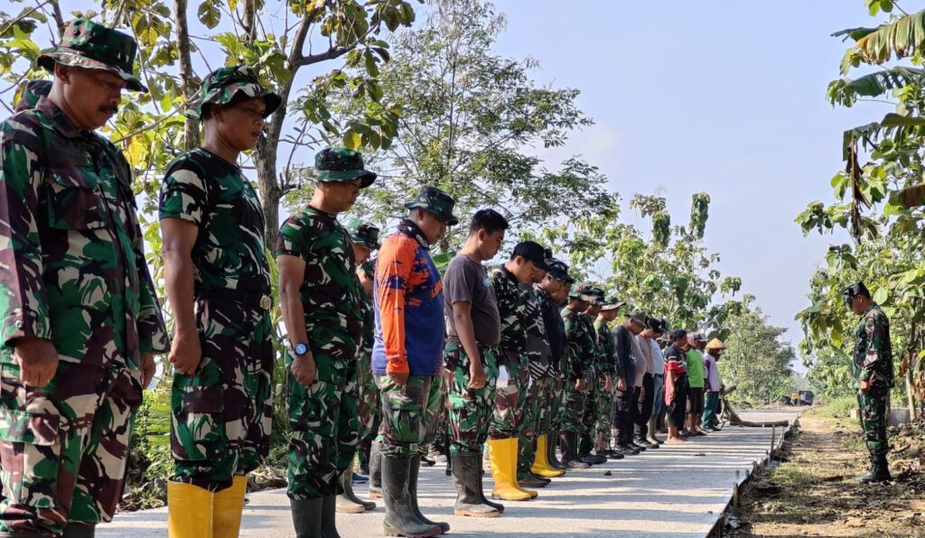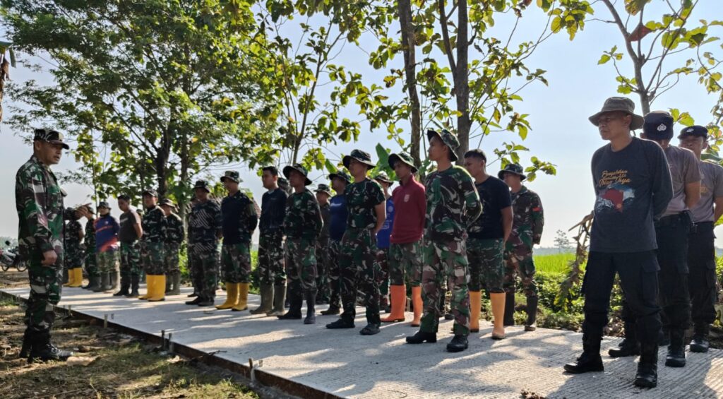 Setiap pagi seluruh prajurit TNI yang tergabung dalam satgas dan masyarakat yang membantu pengerjaan cor blok jalan dan talud melaksanakan apel pagi yang dipimpin oleh Danramil 02/Karangmalang Lettu Arh Ifa Aiwan Kristono. Apel pagi bertujuan untuk mengetahui kesiapan seluruh komponen yang ada, baik material maupun personal. Sabtu, (25/04/2026)