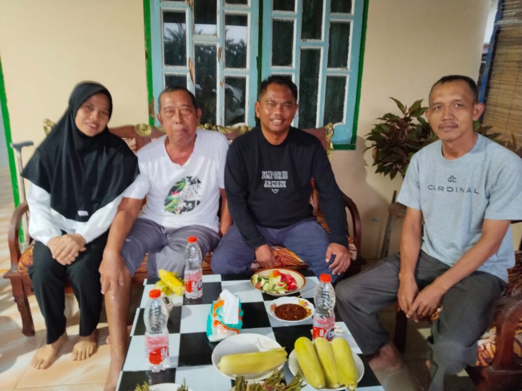 Bupati Sergai Darma Wijaya saat menjenguk tokoh masyarakat Kartimin,60, didampingi Kepala Desa Suka Sari Karmadi dan Anggota DPRD Sergai, Kristina, Sabtu (7/6) sore kemarin di Dusun IB Desa Suka Sari Kec. Pegajahan .( M Yamin Nasution, IGN)