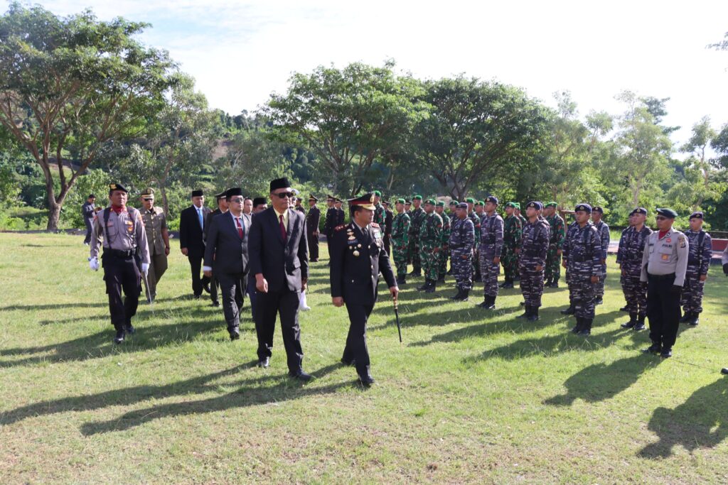 kapolres Buol AKBP Irwan, S.I.K, M.H, M.Tr.Opsla, selaku inspektur upacara, selanjutnya komandan upacara Iptu walidi serta perwira upacara Kabag SDM AKP Suradi S.sos