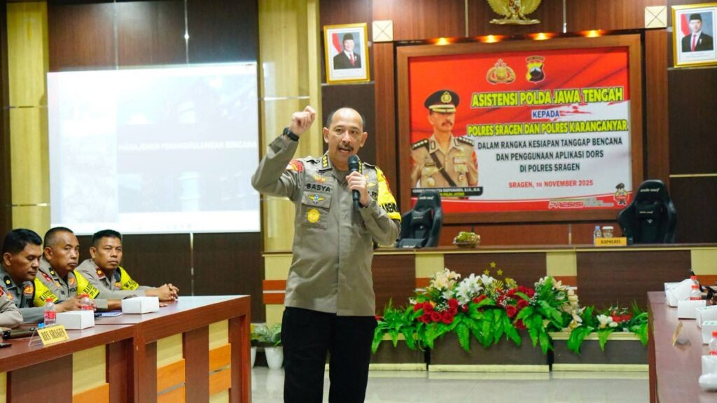 SRAGEN INDOGLOBENEWS.COM– Polres Sragen menjadi tuan rumah kegiatan asistensi kesiapsiagaan penanggulangan bencana dan penggunaan aplikasi Disaster Operation Reporting System (DORS) yang dipimpin langsung Karo Ops Polda Jawa Tengah Kombes Pol Basya Radyanandya.