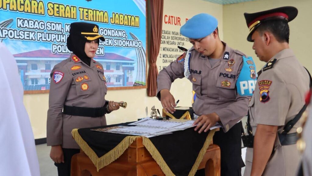 SRAGEN INDOGLOBENEWS.COM – Kapolres Sragen AKBP Dewiana Syamsu Indyasari memimpin langsung Upacara Serah Terima Jabatan (Sertijab) sejumlah jabatan strategis di lingkungan Polres Sragen, meliputi Kabag SDM serta tiga jabatan Kapolsek jajaran, yang digelar khidmat di Hall Sibara Mapolres Sragen.