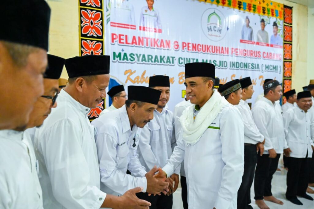 Gubernur Sulawesi Tengah sekaligus Ketua Umum Dewan Pengurus Wilayah Masyarakat Cinta Masjid Indonesia (DPW MCMI) Sulteng, Dr.H.Anwar Hafid,M.Si resmi melantik pengurus Dewan Pengurus Cabang (DPC) MCMI Kabupaten Buol di Masjid Agung Buol, Selasa malam (27/5/2025).
