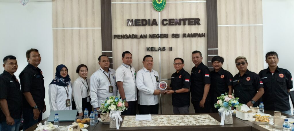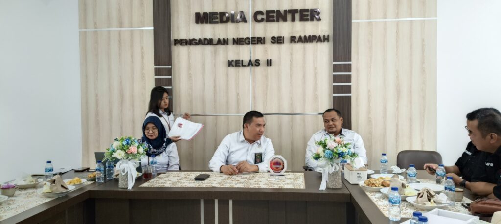 Ketua Pengadilan Negeri (PN) Sei Rampah, M. Sachral Ritonga menyambut audiensi pengurus Forum Wartawan Hukum (Forwakum) Kabupaten Serdang Bedagai (Sergai) di Media Center PN Sei Rampah, Desa Firdaus, Kecamatan Sei Rampah, Senin (30/6/2025).