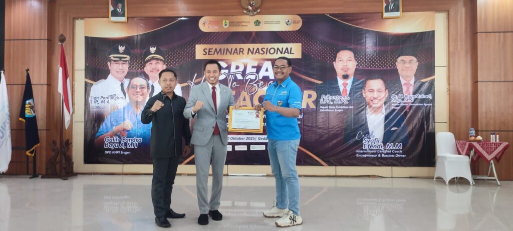 SRAGEN INDOGLOBENEWS.COM.– Komite Nasional Pemuda Indonesia (KNPI) Kabupaten Sragen menunjukkan komitmen serius terhadap peningkatan kapasitas dan kesejahteraan guru dengan menggelar acara besar yang mengundang sekitar 1.500 guru dari jenjang PAUD, TK, hingga SD. Acara yang bertujuan meningkatkan kapasitas pendidik ini dilaksanakan di Gedung Kartini Sragen pada Senin, (20/10/2025).