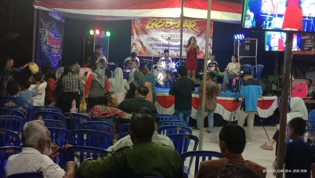SRAGEN INDOGLOBENEWS.COM — Semarak HUT RI ke 80 New Ardista musik hibur warga Brakbunder RT 10 Desa Katelan Kecamatan Tangen Kabupaten Sragen Sabtu (24/8/2025) malam.