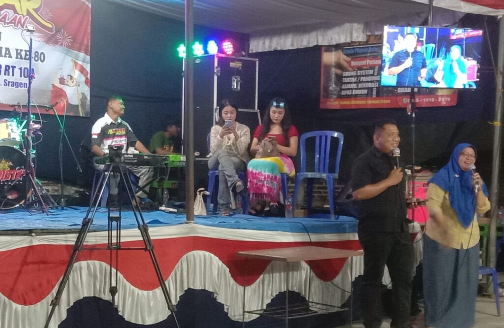 SRAGEN INDOGLOBENEWS.COM — Semarak HUT RI ke 80 New Ardista musik hibur warga Brakbunder RT 10 Desa Katelan Kecamatan Tangen Kabupaten Sragen Sabtu (24/8/2025) malam.