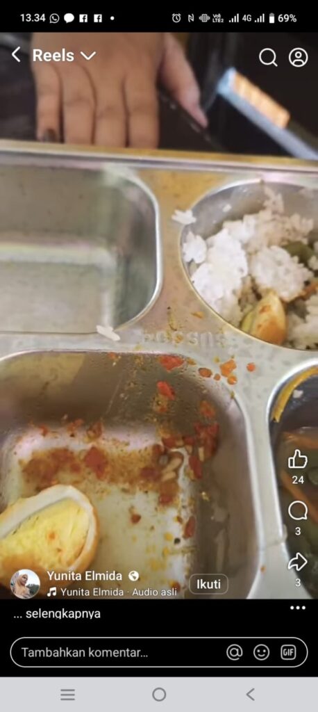 “ Program MBG ini seharusnya bermanfaat untuk anak-anak. Kalau ditemukan cacing hidup dan ulat, tentu sangat memprihatinkan. Kami khawatir jika terjadi sesuatu, sekolah yang akan disalahkan”, pungkas Yunita seraya menambahkan sejak kejadian tersebut, pihak sekolah mengimbau peserta didik agar selalu memeriksa makanan sebelum dikonsumsi dan memastikan setiap kelas diawasi guru saat pembagian MBG berlangsung.