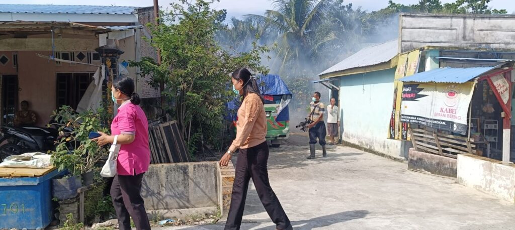 Fogging dilakukan di delapan desa dengan prioritas di Desa Pekan dan Nagur yang paling terdampak banjir. “Semalam kami sudah melakukan penyemprotan di dusun 12 desa Pekan Tanjung Beringin. Semua gratis. Alat dan obatnya dari dinas kesehatan, dan ini bagian dari program puskesmas,” jelas Erma.