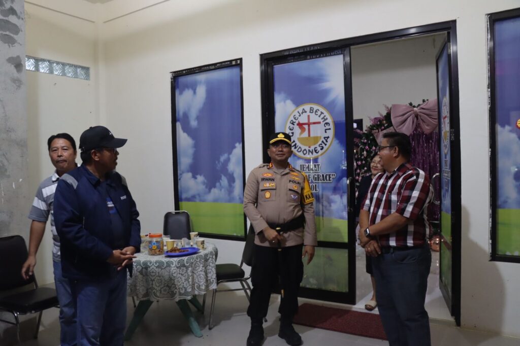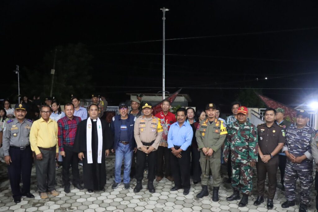 Kapolres Buol AKBP Irwan, S.I.K, M.H, M.Tr.Opsla didampingi Wakil Bupati Buol Dr. Nasir Dj. Daimaroto serta Forkopimda melakukan pengecekan langsung ke sejumlah gereja di wilayah Kabupaten Buol guna memastikan kesiapan pengamanan pelaksanaan ibadah Natal 2025 dalam rangka Operasi Lilin Tinombala 2025, Rabu (24/12/25) malam.