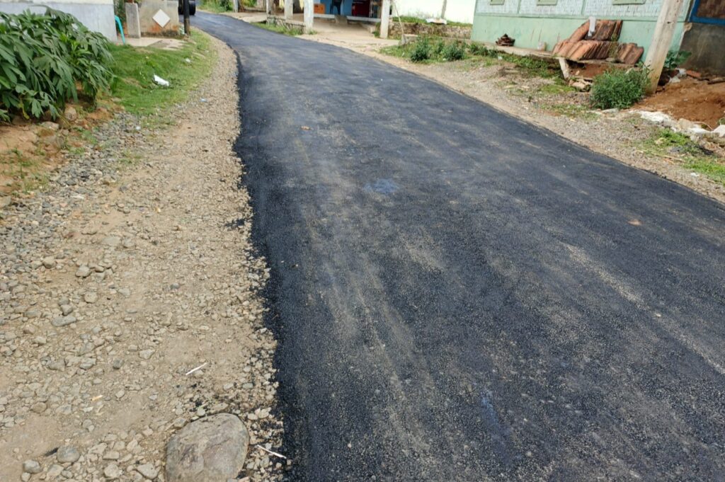 Pekerjaan pengaspalan jalan lingkungan Desa Cihamerang Kecamatan Kabandungan kabupaten Sukabumi Jawa barat belokasi di Dudun pajagan