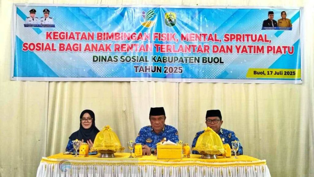 Pemerintah Kabupaten Buol melalui Dinas Sosial menyelenggarakan kegiatan Bimbingan Fisik, Mental, Spiritual, dan Sosial bagi Anak Rentan, Terlantar, dan Yatim Piatu, Kamis (17/7/2025), bertempat di Aula Srikandi, Kelurahan Kulango. Kegiatan ini dibuka secara resmi oleh Sekretaris Daerah Kabupaten Buol, Dadang, SH., MH, mewakili Bupati Buol.