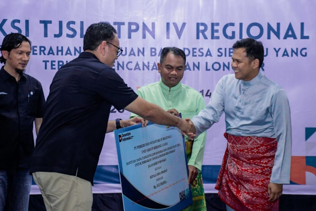 Penanganan akses yang terdampak longsor di Jalan Kebun Gunung Monako, Kabupaten Serdang Bedagai (Sergai), mendapat dukungan konkret dari dunia usaha. Hal ini terlihat saat Pemkab Sergai menerima bantuan Tanggung Jawab Sosial dan Lingkungan Perusahaan (TJSLP) dari PT Perkebunan Nusantara IV Unit Group Serdang 1 dalam acara yang berlangsung di Aula Kebun Gunung Monako, Kecamatan Sipispis, Selasa (25/11/2025).