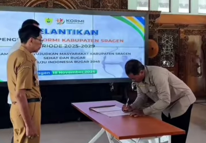SRAGEN INDOGLOBENEWS .COM – Pengurus Komite Olahraga Masyarakat Indonesia (KORMI) Kabupaten Sragen masa bhakti 2025–2029 resmi dilantik pada Selasa, 18 November 2025, di Pendopo Sumonegaran, Rumah Dinas Bupati Sragen.