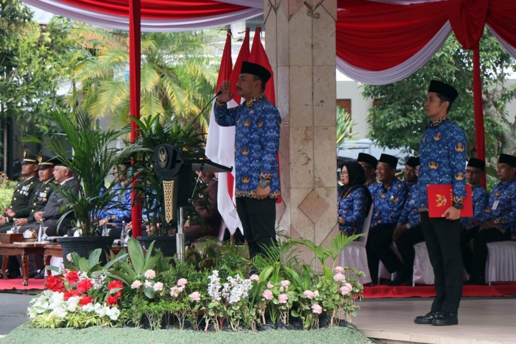 NGAWI INDOGLOBENEWS.COM – Pemerintah Kabupaten Ngawi menggelar upacara peringatan Hari Korpri ke-54 di halaman Pendopo Wedya Graha, dikutip dari suara.ngawikab.go.id Senin (1/12/2025). Kegiatan ini dipimpin langsung oleh Bupati Ngawi Ony Anwar Harsono dan diikuti jajaran Forkopimda, pimpinan perangkat daerah, serta ASN di lingkungan Pemkab Ngawi. Dalam amanatnya, Ony menegaskan bahwa Korpri merupakan bagian yang tidak terpisahkan dari pemerintahan serta memiliki peran strategis dalam mendorong profesionalisme aparatur sipil negara.