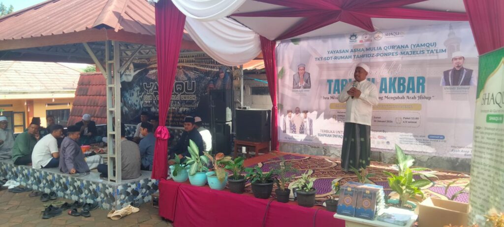 Ketua Yayasan Asma Mulia Qur’ana, Ustadz Asep Taufik Rohman, S.Pd.I mengungkapkan rasa syukurnya atas kehadiran da’i dan presenter kondang dalam acara tersebut, dia pun berterima kasih kepada masyarakat, para alim ulama serta tokoh dan para pemimpin wilayah setempat yang telah berkenan hadir.
