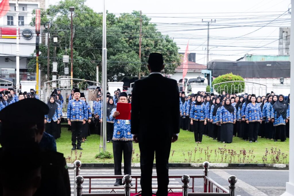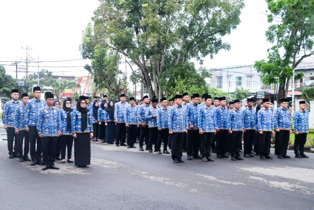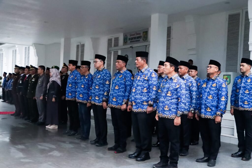 Turut serta dalam pelaksanaan upacara para Asisten, Staf Ahli Bupati, Kepala OPD, Camat, Kabag, Pejabat Administrator dan ASN di lingkungan Pemkab Sergai. (M Yamin Nasution)