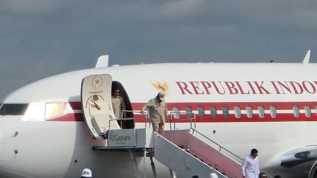 Setibanya di Lanud Supadio, Presiden Prabowo langsung disambut oleh Kapolri Jenderal Pol. Drs. Listyo Sigit Prabowo, M.Si. Selanjutnya, pada pukul 09.18 WIB, Helikopter Kepresidenan yang membawa rombongan Presiden lepas landas menuju Helipad Lanud Harry Hadisoemantri di Kabupaten Bengkayang.