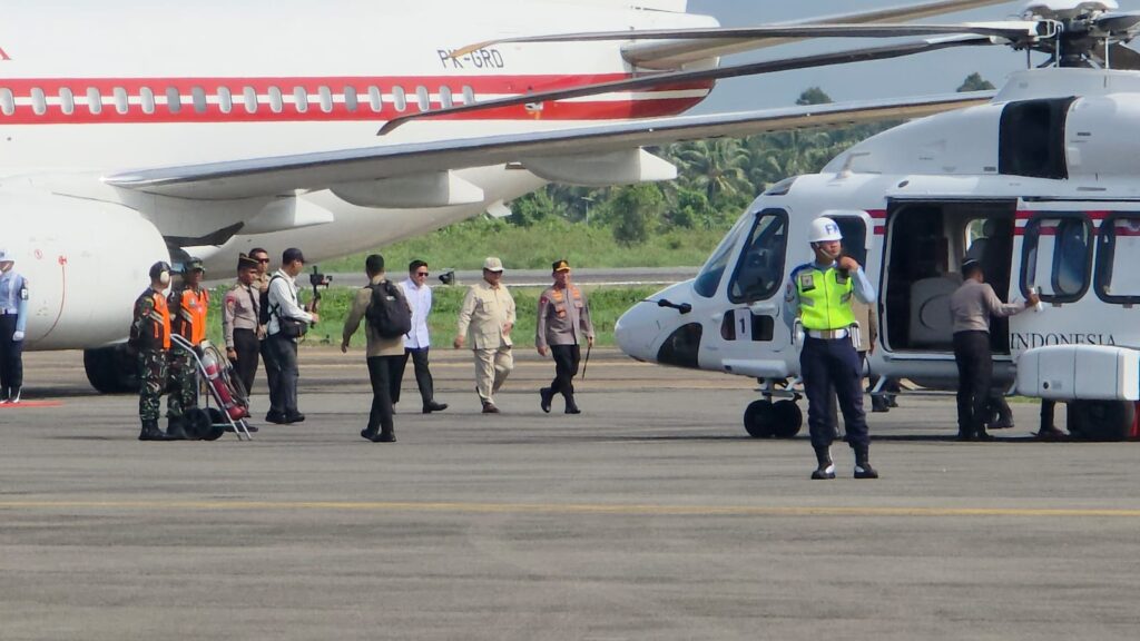 Presiden Prabowo Subianto tiba di Lanud Supadio sekitar pukul 09.00 WIB menggunakan Pesawat Kepresidenan Boeing 737-7EG (BBJ) dari Bandara Halim Perdanakusuma Jakarta. Dalam kunjungan kerjanya kali ini, Presiden didampingi sejumlah pejabat Sekretariat Presiden, di antaranya Sekretaris Kabinet Letkol Teddy Indra Wijaya, Kepala Sekretariat Presiden M. Rizky Irmansyah, serta beberapa staf Sekretariat Presiden lainnya.