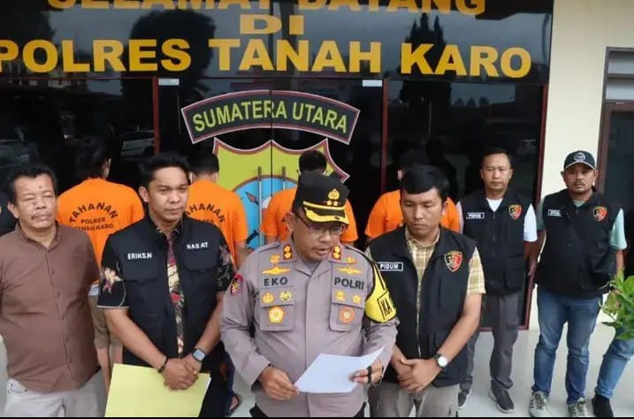 Kabanjahe, Karo – Polres Tanah Karo berhasil mengungkap tindak pidana pembunuhan dan atau penganiayaan secara bersama-sama yang terjadi pada Minggu (30/11) sekira pukul 02.00 WIB di Jalan Sudirman, Kelurahan Gung Leto, Kecamatan Kabanjahe, Kabupaten Karo, tepatnya di sebuah cafe atau klub malam Bravo SGR.
