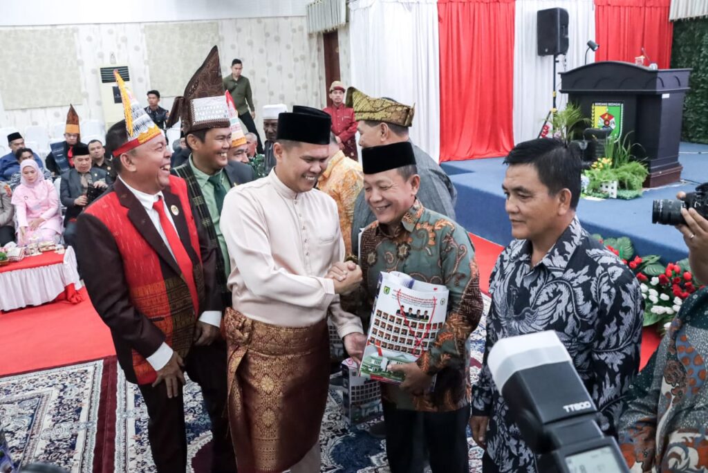 “Sedangkan tujuh Program Hasil Terbaik Cepat (PHTC) tahun 2025-2029 antara lain; melanjutkan program peningkatan jalan kabupaten dan penyelesaian pelebaran jalan nasional; melanjutkan program Sekolah Mantab; menuntaskan UHC dan mewujudkan 20 Puskesmas berpredikat paripurna; meningkatkan produksi hasil pertanian; mengoptimalkan PAD; membangun TPST dan pengelolaan persampahan dan Mal pelayanan publik (MPP),” ujar Bupati dihadapan pimpinan DPRD dan seluruh undangan.