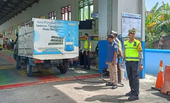 Selain pemeriksaan teknis, petugas juga memberikan himbauan langsung kepada seluruh pengendara angkutan barang agar mematuhi aturan lalu lintas dan menjaga keselamatan berkendara.