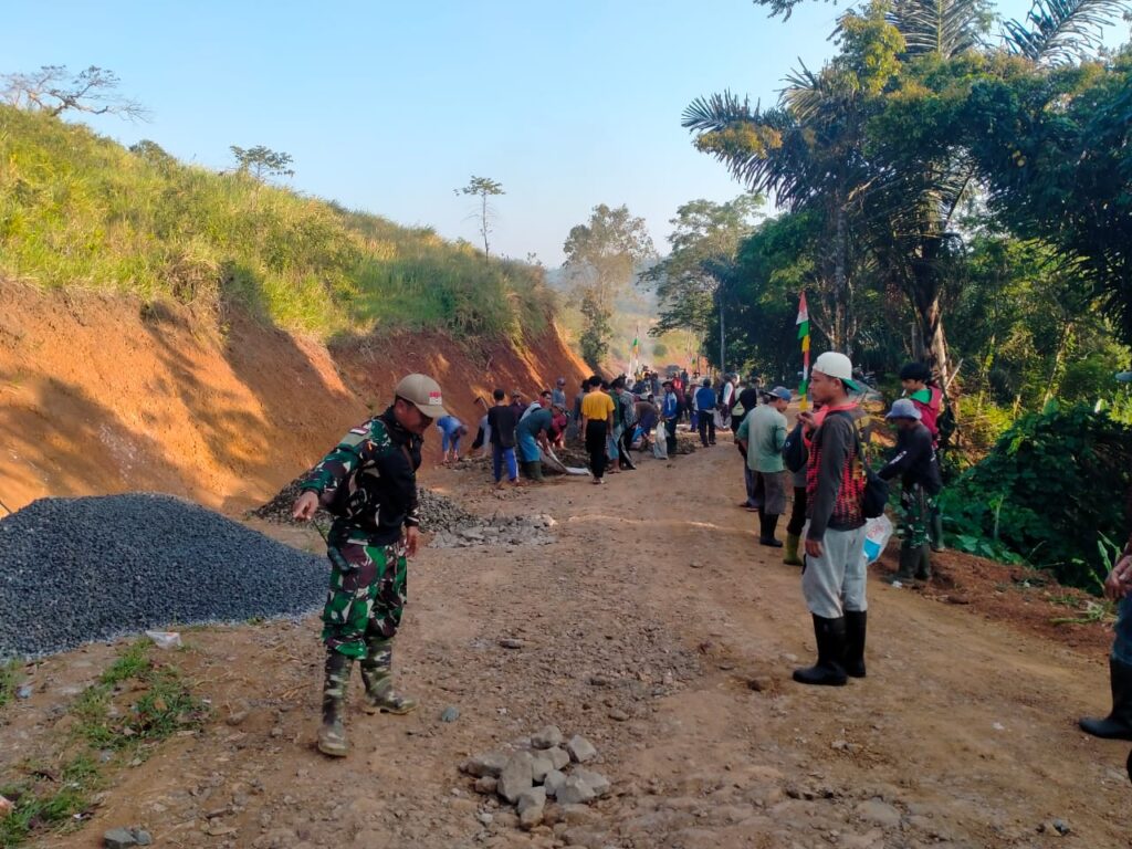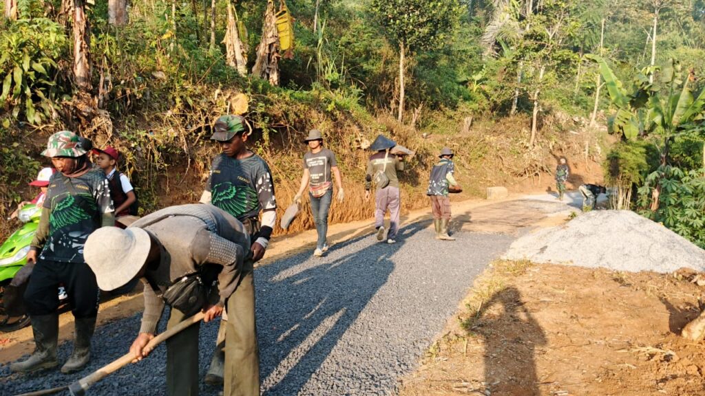 Lebih dari sekadar proyek fisik, pengaspalan ini menjadi simbol hidup dari semangat gotong royong dan persaudaraan yang membumi. Di bawah terik matahari yang menyengat dan debu jalanan yang menari, sebanyak 90 warga bahu-membahu bersama 5 personel TNI dan 2 perwakilan aparat desa. Tak ada sekat antara seragam loreng dan pakaian rakyat, karena yang bekerja di lapangan adalah satu: anak bangsa yang mencintai desanya.
