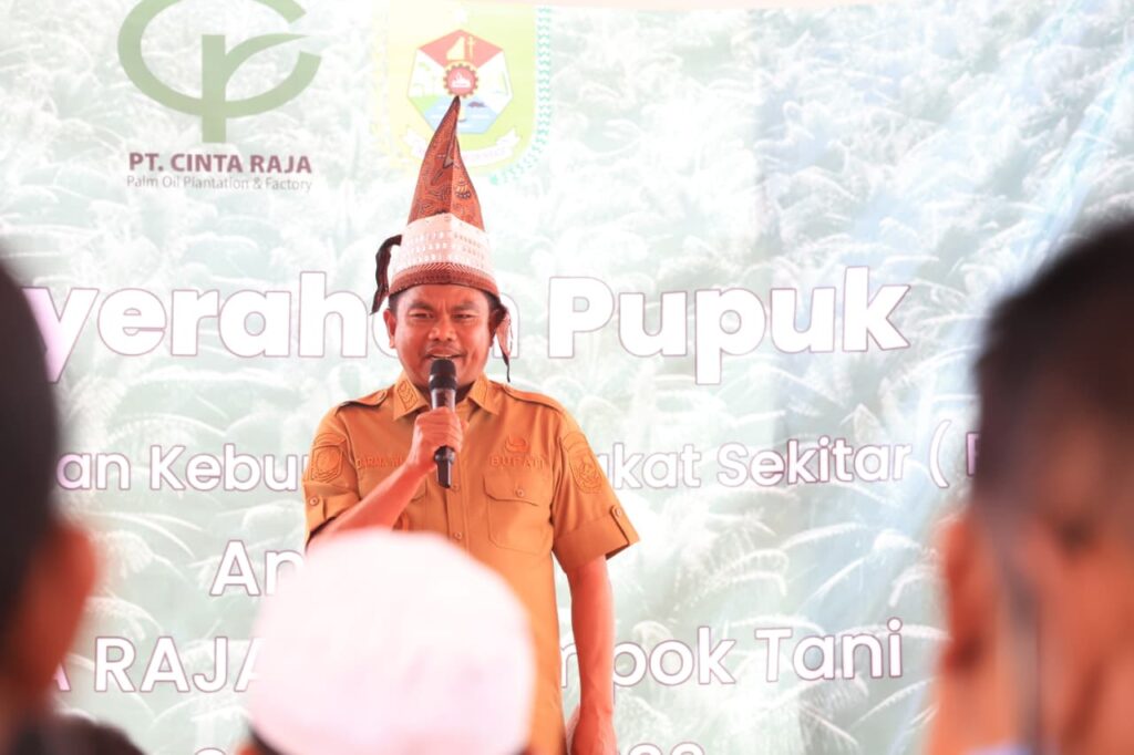 ”Penyerahan bantuan pupuk oleh PT Cinta Raja ini sebagai bentuk komitmen perusahaan dalam meningkatkan produktivitas dan kualitas tanaman kelapa sawit pekebun mitra. Bantuan tersebut kami harapkan berdampak pada peningkatan hasil panen sekaligus kesejahteraan petani,” ujar Bupati yang akrab disapa Bang Wiwik ini, sembari mengingatkan agar pupuk digunakan secara tepat dan sesuai rekomendasi teknis agar hasil yang dicapai bisa lebih optimal.