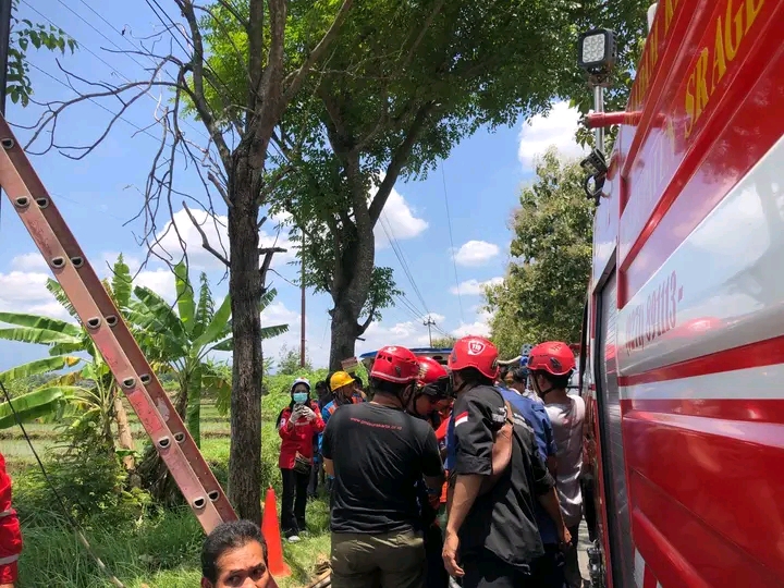 Korban MD dengan posisi kepala kebawah tubuh tersangkut pohon, banyaknya pengguna jalan yang melihat dan melaporkan ke PSC 119 Sukowati saat korban masih berada di ketinggian dekat jaringan listrik.