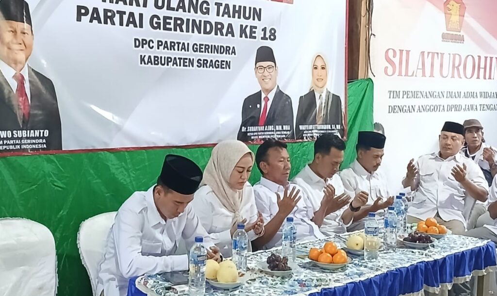 SRAGEN INDOGLOBENEWS .COM –Terbalut rasa duka tak bisa disembunyikan dari wajah Ketua DPC Gerindra Sragen, Wahyu Dwi Setyaningrum. Di tengah momentum tasyakuran HUT ke-18 Partai Gerindra yang digelar Minggu (8/2/2026), terselip doa mendalam bagi salah satu kader muda terbaik partai yang baru saja berpulang.