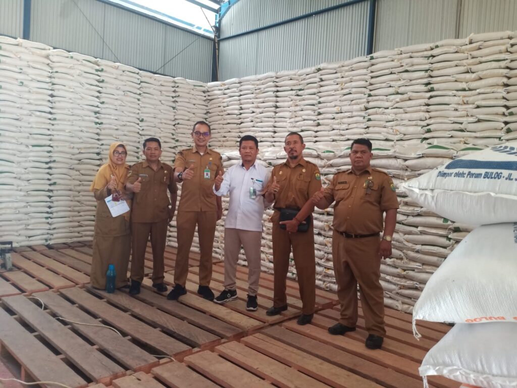 Plt. Asisten perekonomian dan pembangunan setda buol, wahyu setiabudi didampinggi plt. Kepala Dinas koperasi UMKM, perdagangan kab. Buol moh. Rizal dan kepala dinas kominfo kab. Buol Abdullah mangge dan kasubag perekonomina setda kab. Buol rizal ab. Umar melaksanakan pengecekan ketersediaan beras digudang bulog kecamatan bokat, senin, 14/07/25