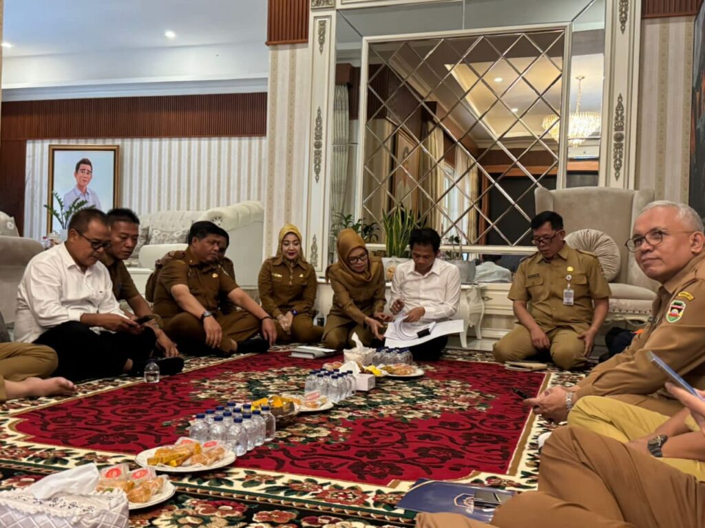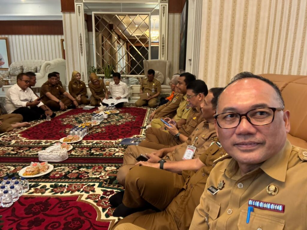 Pertemuan yang dilaksanakan secara lesehan tersebut mencerminkan suasana kerja yang egaliter namun tetap fokus pada poin-poin teknis penanggulangan bencana. Dalam dokumentasi foto yang diterima redaksi, terlihat para pejabat yang mengenakan seragam dinas khaki tengah serius menelaah berkas-berkas laporan bersama tim teknis.