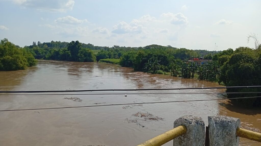 Poto Sungai Bengawan Solo meluap ,di pantau dari jembatan Ganefo Tangen Sragen Rabu 15/4/2026.————————————————————-